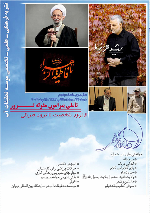 نشریه فرهنگی ۰۱/بهمن/۱۳۹۹ ۰۱/بهمن/۱۳۹۹ پنجمین شماره نشریه فرهنگی ـ علمی تخصصی موسسه تحقیقات آب دریافت فایل pdf پنجمین نشریه فرهنگی موسسه تحقیقات آب خواندیهای این شماره:سرمقالهاندکی درنگپای کلام امیر کلامحدیث ماهولایت فقیه، استمرار ولایت رسول الله (ص)داستان و شعرمعرفی کتاب و نقد فیلمآموزش عکاسیحرکات ورزشی برای کارمندانمهارتهای مدیریتی زندگی کاریوقتی دلم میخواهد بنویسماخبارو موسسه تحقیقات آب در نمایشگاه بینالمللی تهران